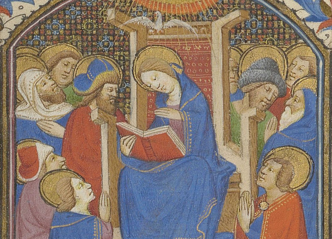 Illustration : Maître du Morgan MS. M.293, Pentecôte, Livre d’heures à l’usage de Langres, vers 1445-1450. Paris, Bibliothèque nationale de France, ms. latin 1186, fol. 128